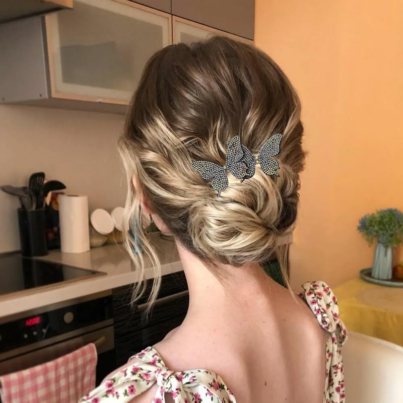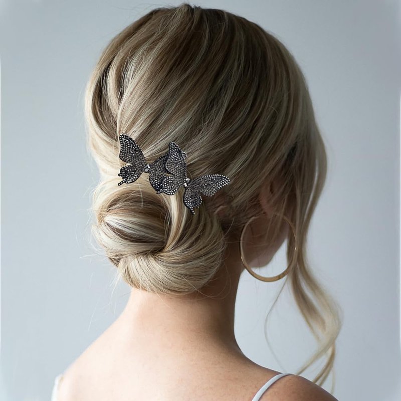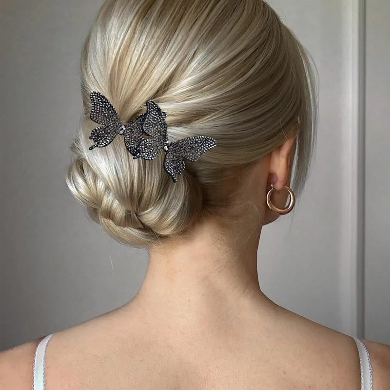 2 PACK Rhinestone Butterfly Hair Bun Maker, Elegant Lazy Hair Curler, Rhinestone Hair Bun Maker, French Hairstyle Twist Bun Maker, Elegant Hair Accessories For Women Girls