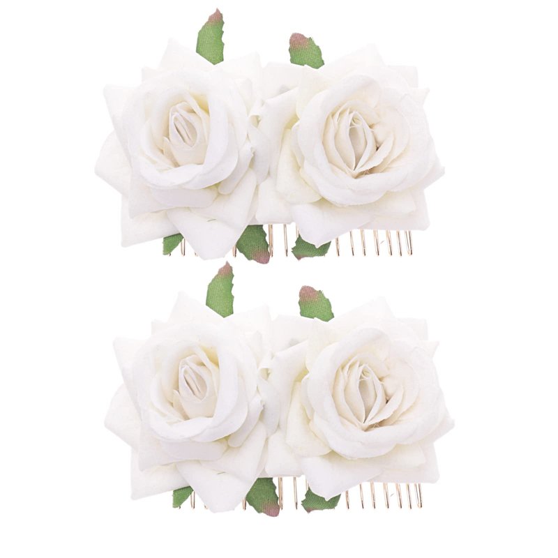 2 Pack Rose Flower Hair Clip Women Rose Flower Hair Accessories Wedding Hair Clip Flamenco Dancer (White)
