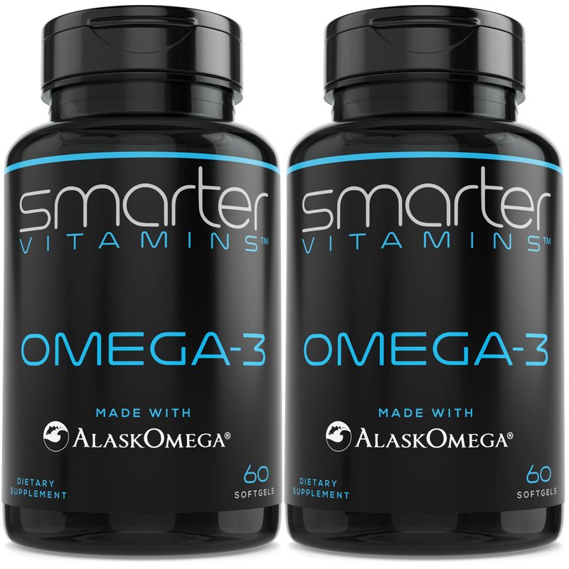 SmarterVitamins Omega 3 2000 mg per serving, 1500 mg Omega 3's per serving, Fish Oil is formulated with AlaskOmega, Fish Oil. Strawberry Flavored. 1000 mg Softgels.