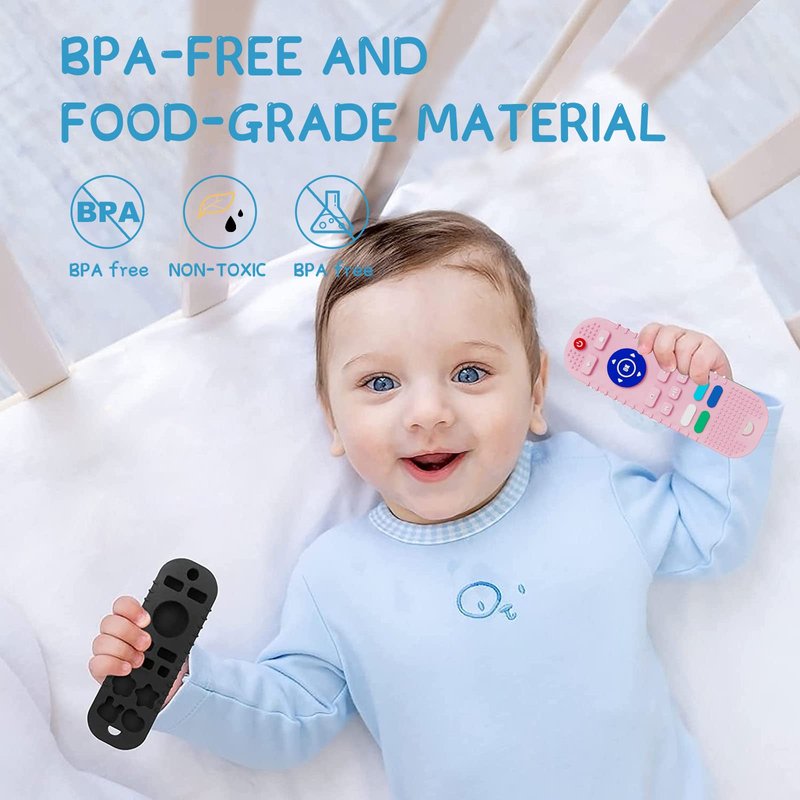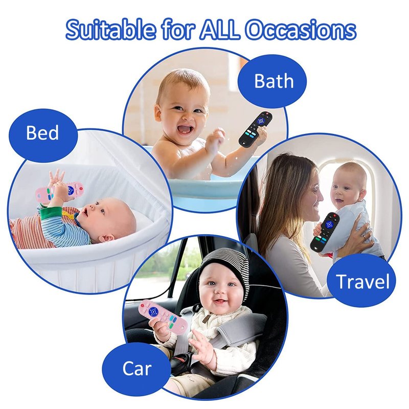 - 【Baby Teething Toys】These soft baby teething toys take the shape of a remote control, with graphics on the back to help your baby learn shapes. Bright, vibrant colors will grab your baby's attention. Work on your baby's hand-eye coordination.