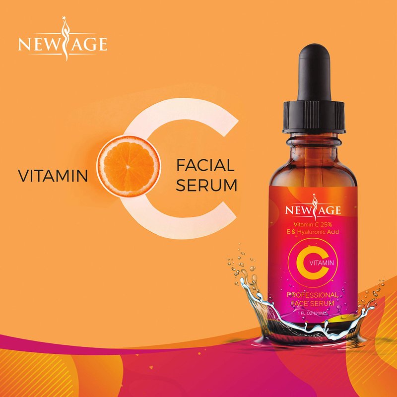 (2-PACK) Vitamin C Serum with Hyaluronic Acid for Face and Eyes - Natural Anti Aging Eye Serum - Facial Serum Fades Age Spots and Sun Damage - By New Age