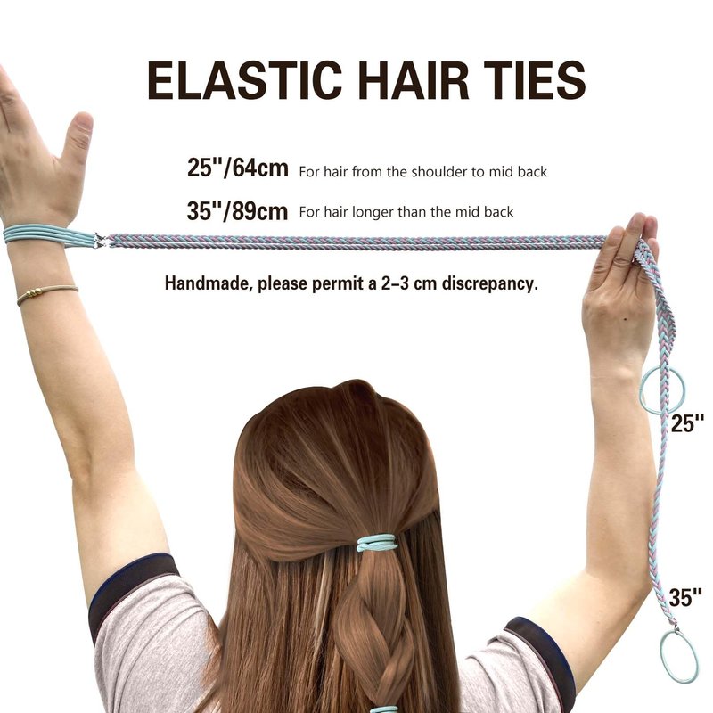 - PERFECT FOR ALL TYPES OF HAIR: Not only did they work amazing for long, thin, super fine hair, but they also worked on thick, short, curly hair and kept both nice at the beach and swimming! There are two alternative sizes. Length of regular thick hair ties is about 25" long, perfect for hair from the shoulder to mid back. Wrap sections smaller or longer depending on hair length. The long version is 35" and perfect for hair longer than the mid back