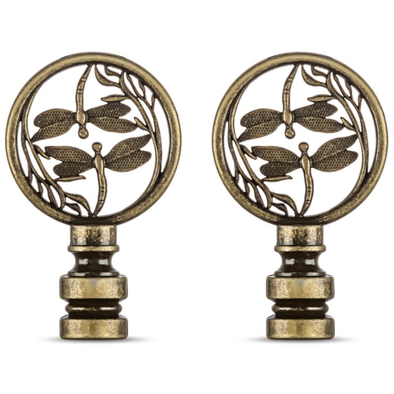 2 Packs Lamp Finial Cap Knob, Dragonfly Design Lamp Decoration for Lamp Shade, Antique Brass, 1-3/8 Inches