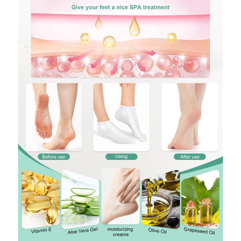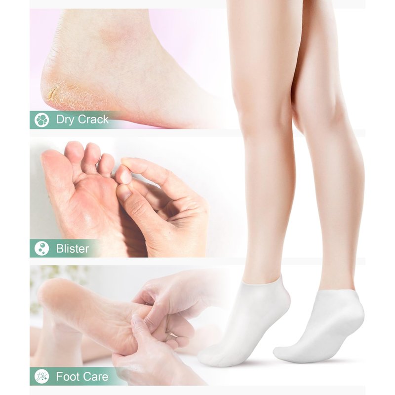 - Moisturizing Socks: Wearing silicone socks can help lock in moisture and prevent dryness; Long-time use of the foot care socks can promote smoother and softer skin.