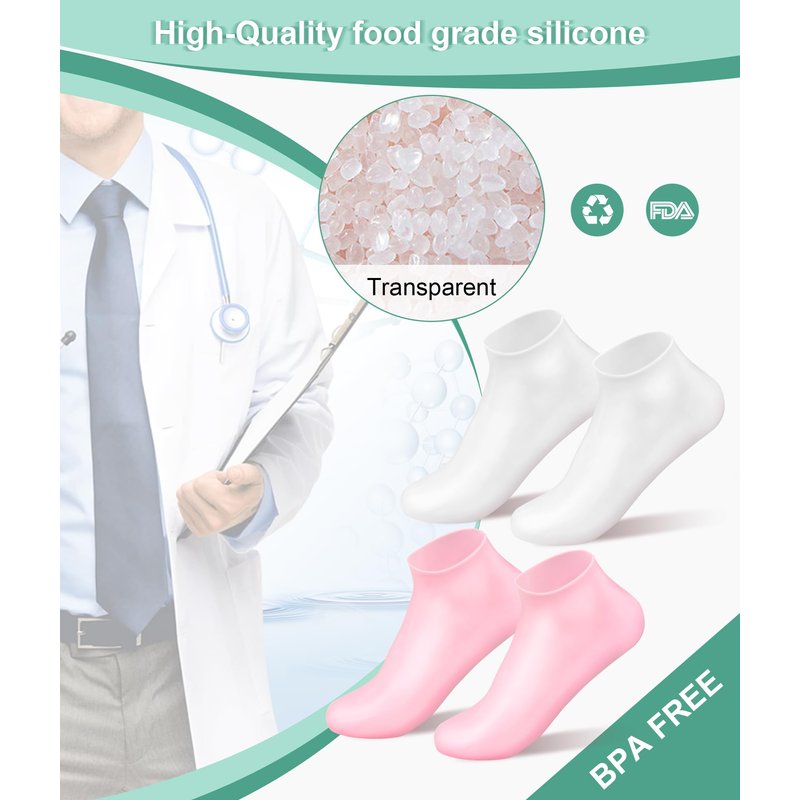 - Lotion Socks: Silicone socks can protect the feet by acting as a barrier against friction. Infusing Moisturizer into silicone heel socks helps soften rough or callused skin on the feet, which can help people with dry or cracked heels.