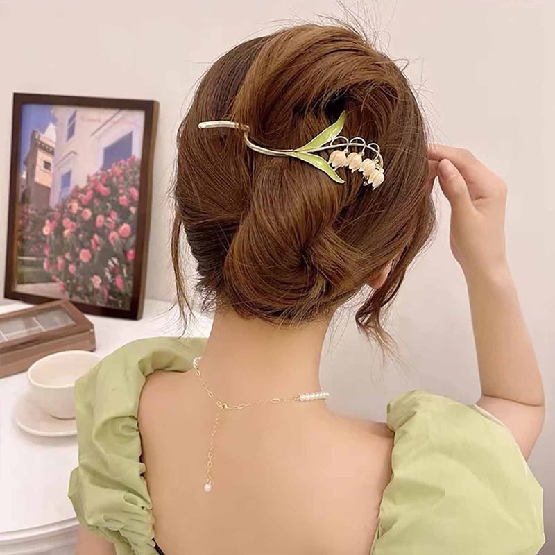 - ★【Large Metal Hair Clips】:Unique large metal hair claw clip with lily of the valley flowers and green leaves. Charming and stunning. Wearing this hair clip will bring you good luck.