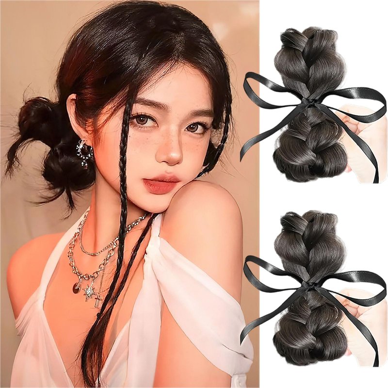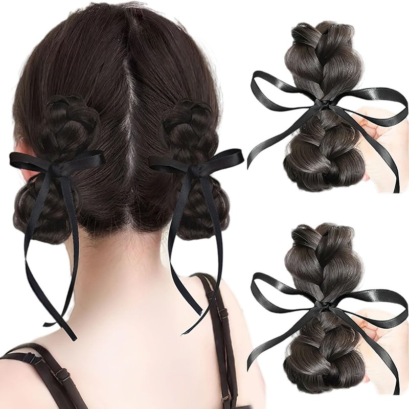 2 Pcs Black Hair Bows Hair Clips Simulation Girls Hair Package Clip Ribbon Double Pill Fluffy Hair Bundle Sweet Cool Style Duckbill Clip