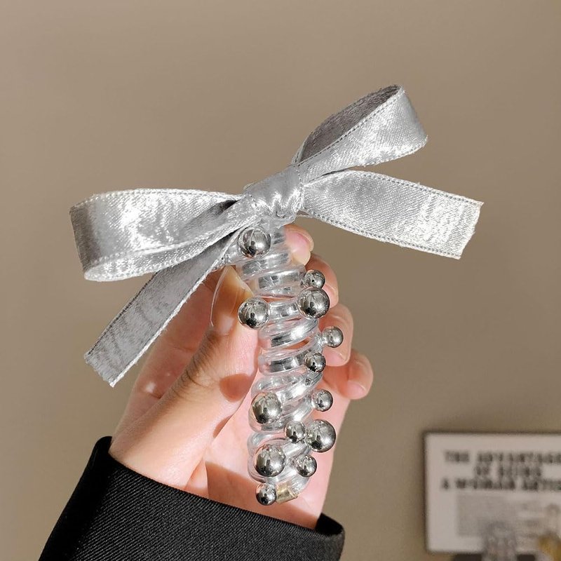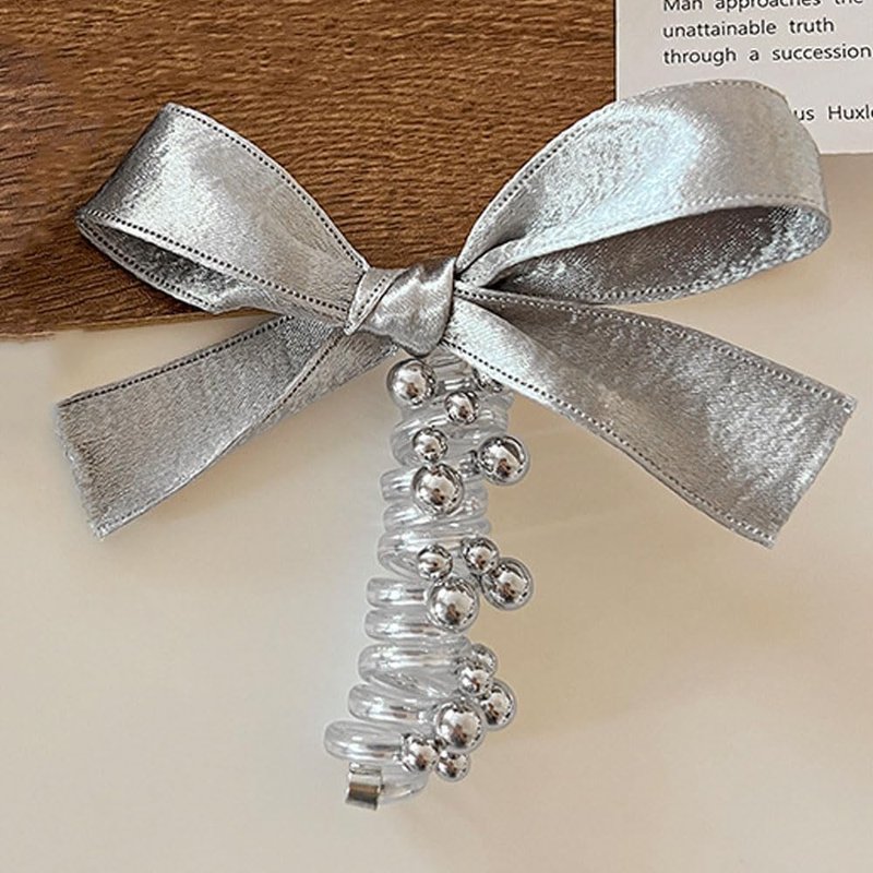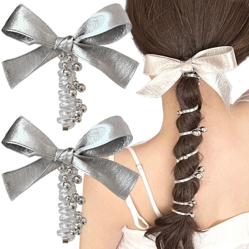 - 【Hair Bows Telephone Wire Hair Ties】You will get 2 pcs bows ponytail holders spiral hair ties,silver bows for hair pony tails hair ties can be paired with any sweet outfit to stand out and exude charm, making your outfit even more charming.