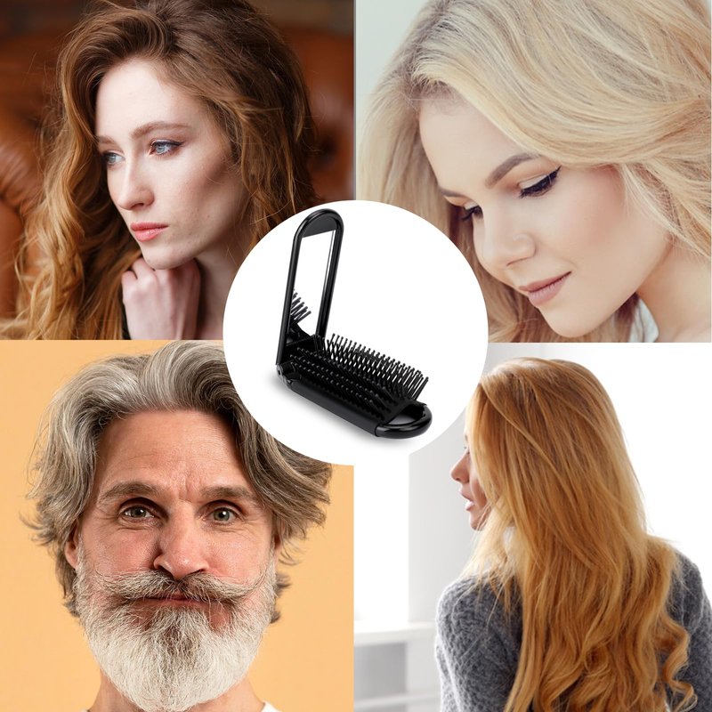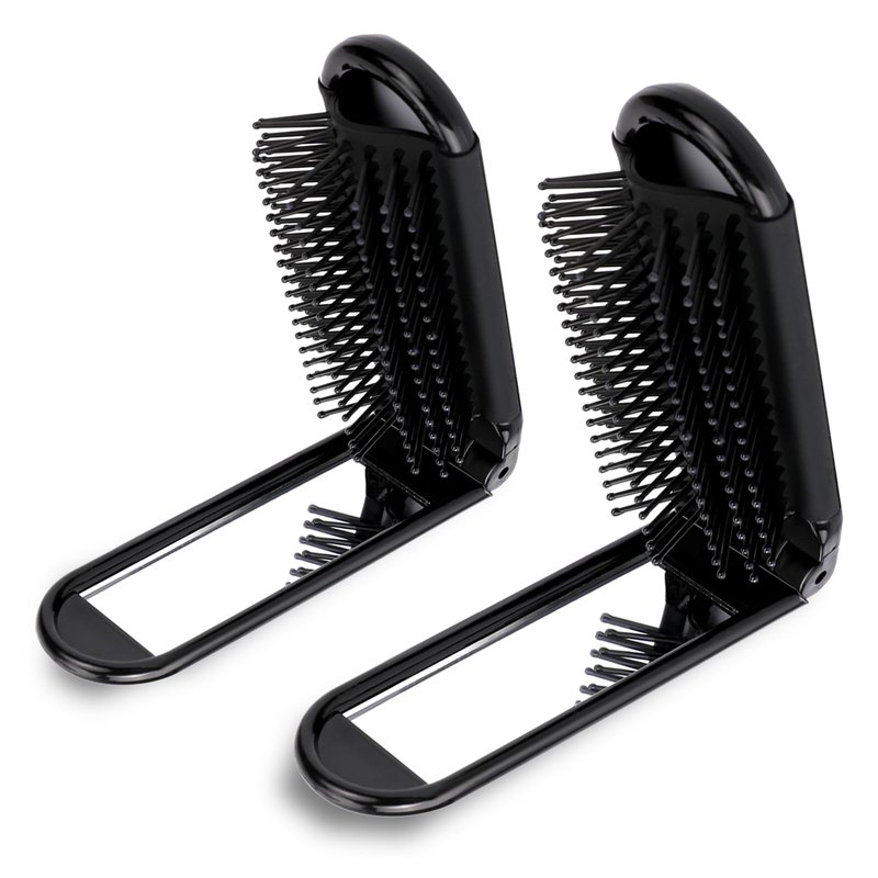 - 【2-In-1 Design】You will receive 2 pieces of foldable travel brushes for hair, the color is black, one end is a nylon hair brush, which can be used to comb your hair, and the other end is a mirror, you can check your makeup anytime, anywhere, keep your makeup neat and tidy