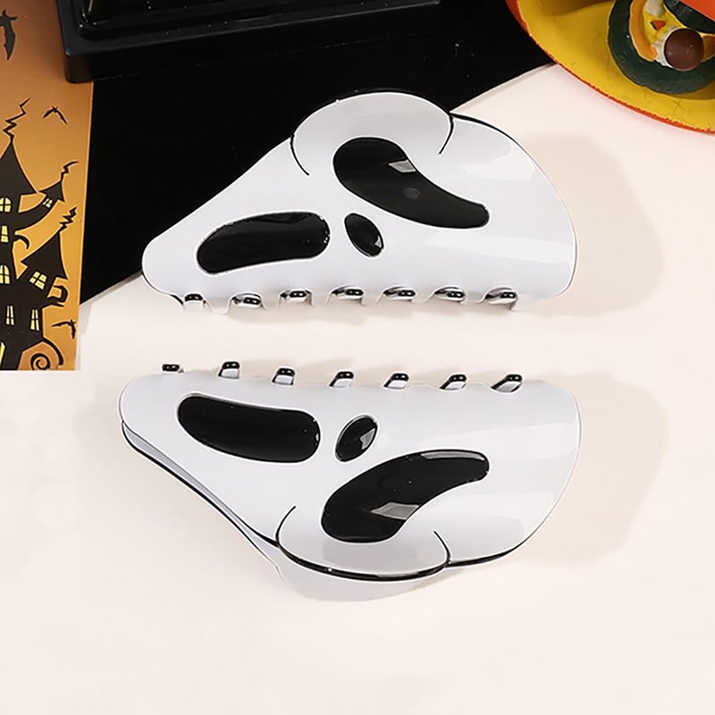 2 Pcs Halloween Hair Claw Clip, Spooky Ghost Face Hair Clip Creative Skull Hairpin Funny Ponytail Clip Scream Grimaces Scary Styling Shark Clip Hair Accessories Halloween Styling