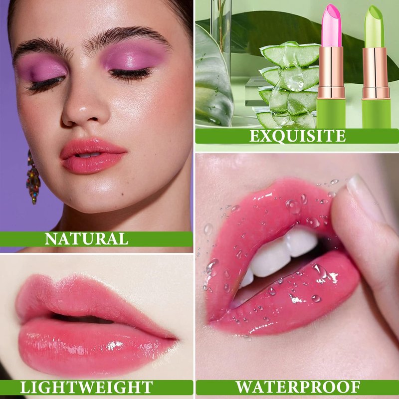 🌴Jelly crystal aloe vera lipstick is an aloe vera extract that deeply moisturises your lips and smoothes out fine lines, it gives your lips a different colour depending on the temperature, it is naturally light and not heavy, it is beautifully packaged, easy to carry and suitable for all occasions.