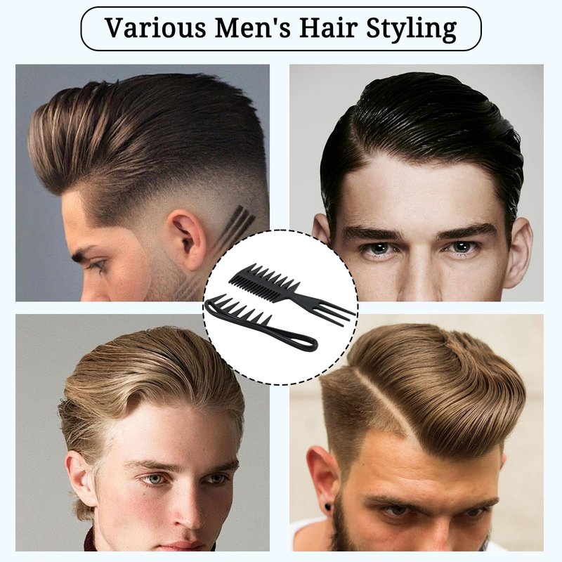 - Wide-Tooth Design: Features two different styling comb designs, each with varying tooth shapes and widths to meet all your hairstyling needs. Suitable for creating flawless lines and achieving the classic pompadour look, a staple in men’s grooming