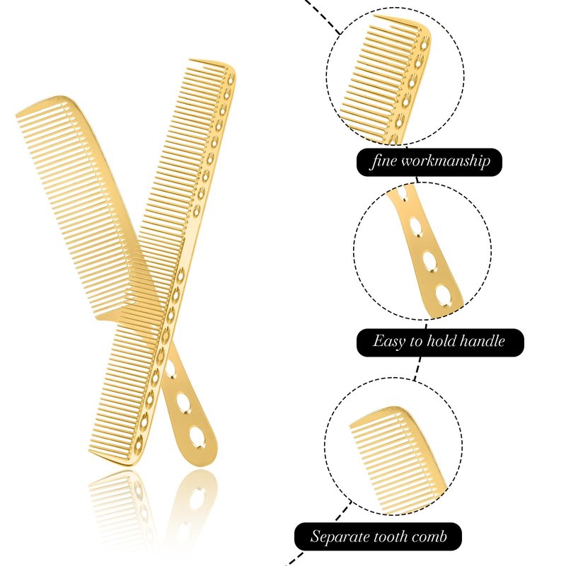 2 PCS Metal Hair Styling Comb Set Professional Barber Comb, Aluminum Cutting Comb Metal Comb for Men Fine Tooth Comb Detangling Comb Anti Static Metal Combs for Hair Women, Gold