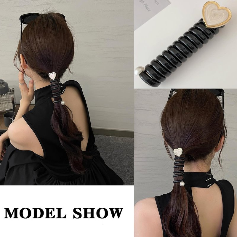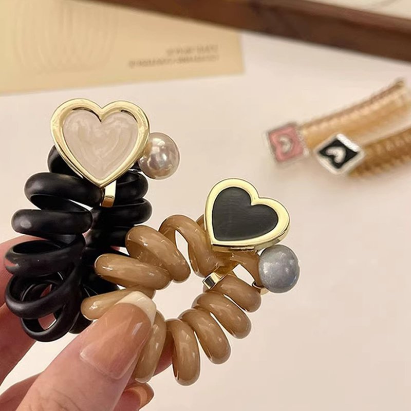 - Telephone Cord Hair Ties: The straight spiral hair ties can wrap around your ponytail or braid to prevent your hair from running wild. You can keep your hairstyle neat and tidy with these hair ties. Simple heart -shaped design, looks more stylish and simple