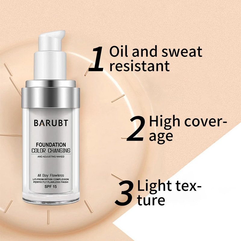 Magical colour changing liquid foundation- that goes on white and instantly self-adjusts to match your exact skin tone,it can be applied to any skin color. Sunscreen liquid foundation contain SPF 15 sun protection to shield your skin from harmful UVA and UVB rays. Light weight matte foundation efficiently hides wrinkles & lines, flawless full coverage natural color face primer base makeup. Lightweight, hides blemishes and evens skin tone,create a natural color in the perfect shade. For all skin - oil-free, non-comedogenic formula, easy to apply and blend,effectively hydrate and moisturize skin,feels comfortable and long-wearing.