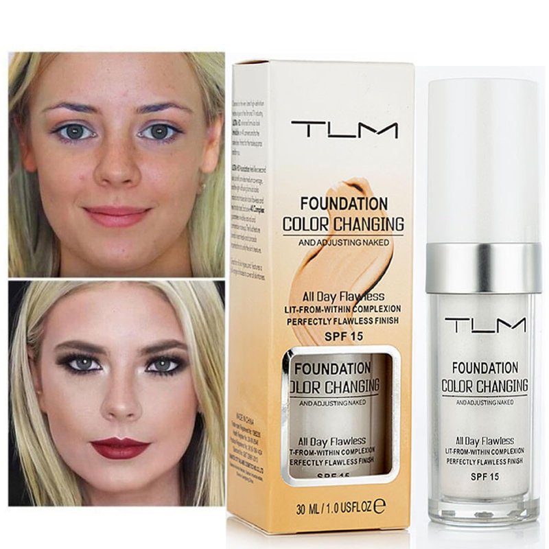 2 Pcs TLM Color Changing Foundation Makeup, Hydrating Waterproof and Light Long Lasting, Flawless Full Coverage Natural Color Face Primer Base Makeup.