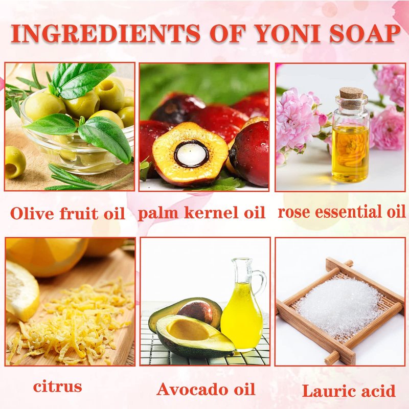 - 🌸【Dermatologist-Tested】Our yoni bar soap for women is made of natural Ingredients, Paraben-free, Glycerin-Free and Alcohol Free,Sulfate-free, Natural soap is close to the PH value of the skin, which is gentler and more conducive to the health of the private parts.