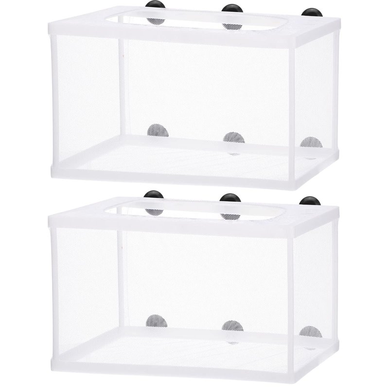 2 Pieces Fish Tank Breeder Net Mesh Fish Breeder Box Fish Hatchery Breeder Box Separation Net Plastic Frame Breeder Box Fry Hatchery Incubator Mesh Fish Breeding Box with Suction Cup for Aquarium