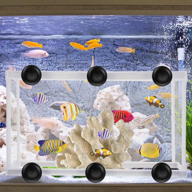 - Easy to install: this mesh breeder box for fish tank is easily attached to the top of your aquarium by included suction cups, which is effectively adsorbed on the wall of the fish tank and is not easy to slip off