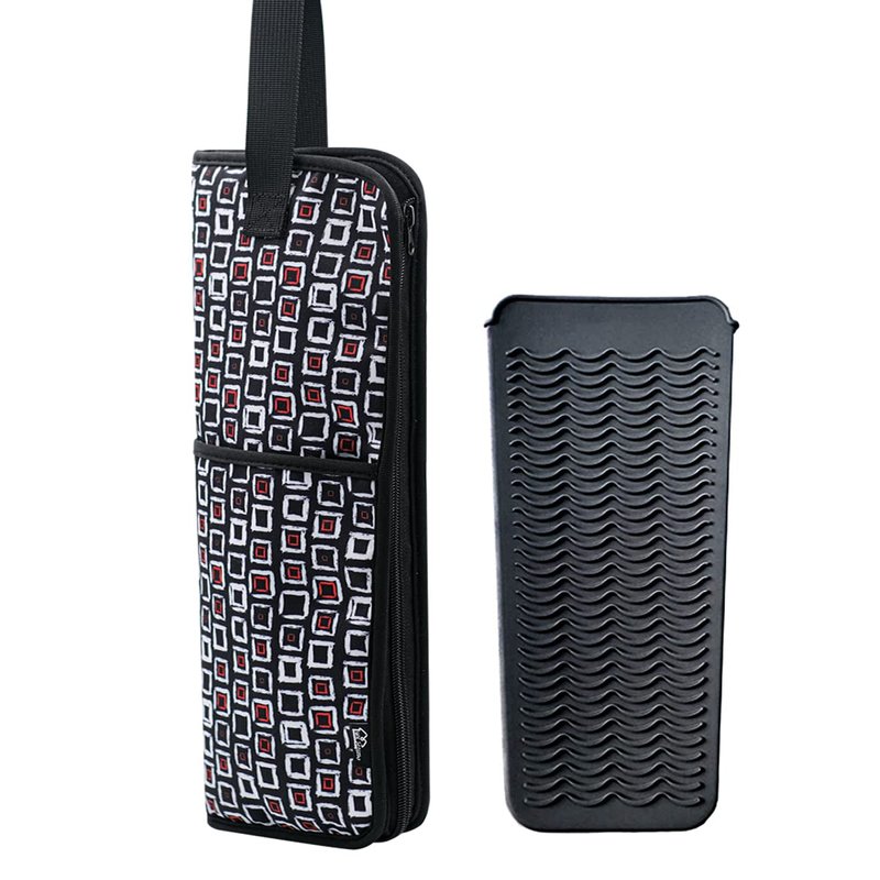 -1pc canvas hair flat iron organizer bag and 1pc heat resistant silicone cover/mat in one package .