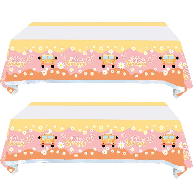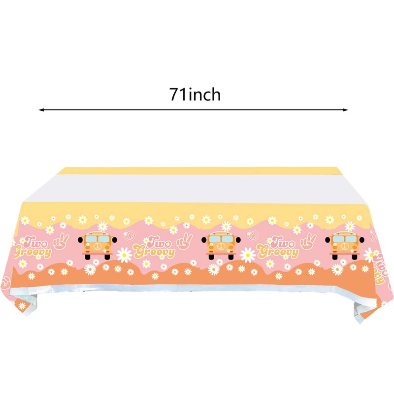 2 Pieces Two Groovy Tablecloth, Two Groovy Hippie Birthday Party Supplies Decorations for Girl–Two Groovy Party Table Cover (70.9" x 42.5")