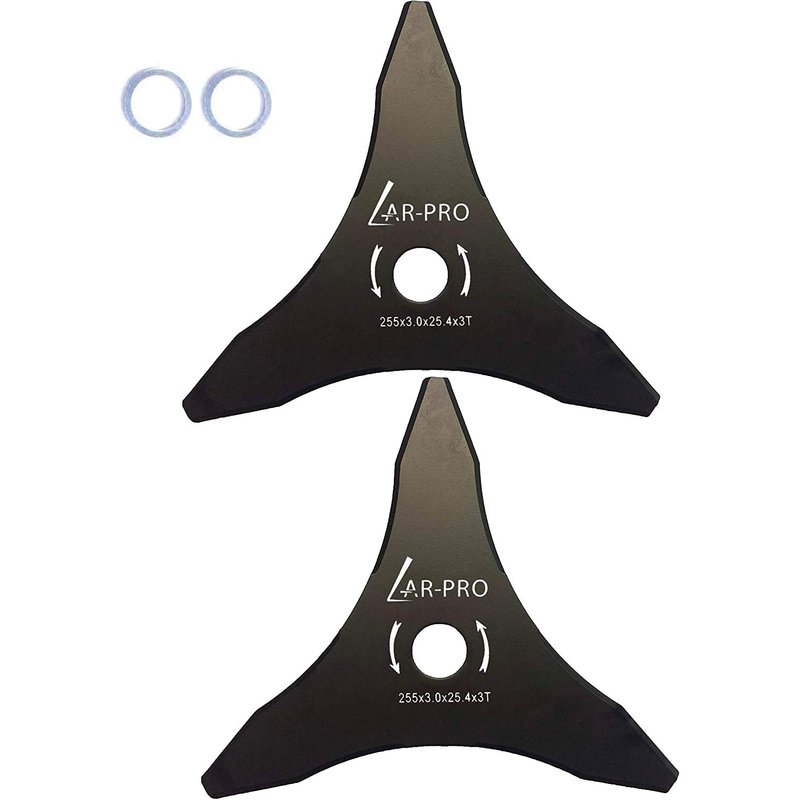 (2-Set) 10" x 3 Teeth Carbon Steel Brush Cutter Blades with Washers - 2 Blades and 2 Washers - Blades for 20mm or 25.4mm Arbor - Compatible with Husqvarna, Stihl, Ego, and More