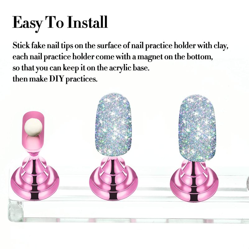 Each tip stand has a magnetic bottom which allows it to stay attached to the magnetic crystal base, easy to install and uninstall, they can not only be applied as practice stands, also can be applied to display nail art.