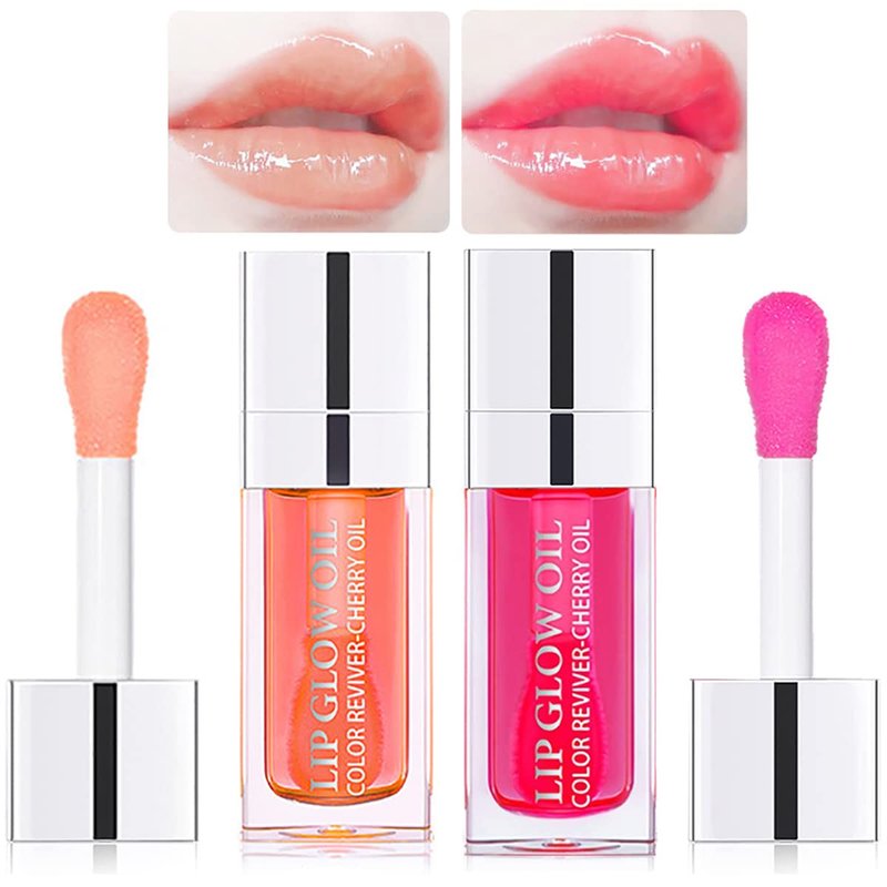 2 Set Lip Oil Hydrating Tinted Lip Balm, Plump Lip Gloss Lip Care Transparent Toot Lip Oil Tinted, Fresh Texture & Non-sticky, Nourishing Repairing Lightening Lip Lines Lip Care Products (Pink / Cherry)