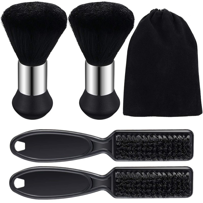 4 Pieces hairdressing brush tools, includes 2 pieces barber blade cleaning brush clipper cleaning nylon brush and 2 pieces neck duster brush hair sweep brush for hair styling, black
