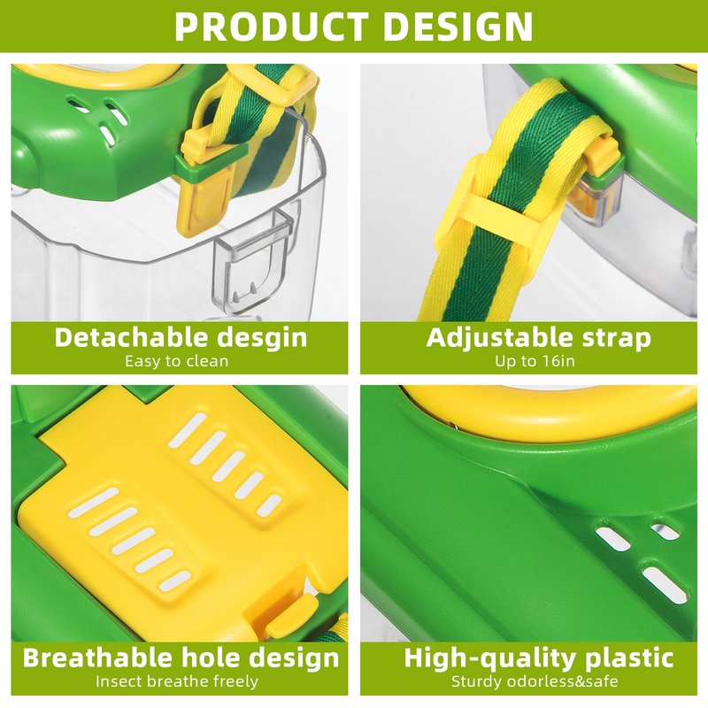 - [Easy to Use] The insect observation box is of moderate size (6.1 x 3.35 x 3.74"), with adjustable strap length. Allowing kids to easily capture various small creatures such as butterflies, grasshoppers, beetles, ladybugs, etc. during exploration
