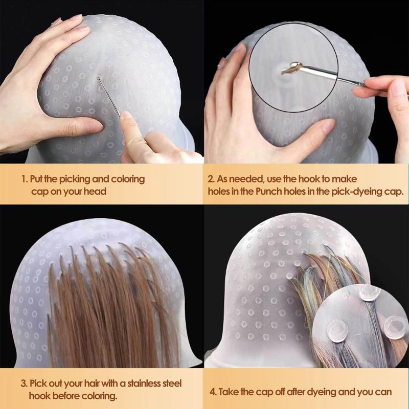 - Material: The hair dye cap is made of silicone, durable, easy to clean and reusable