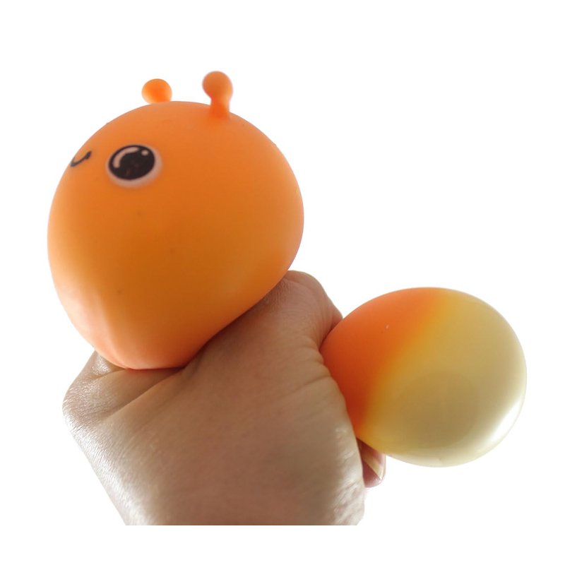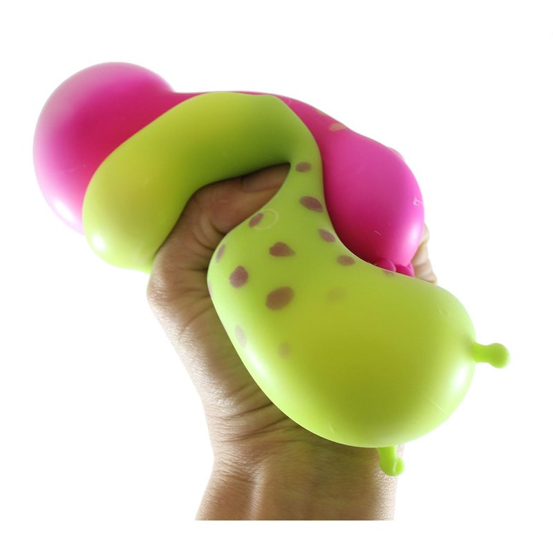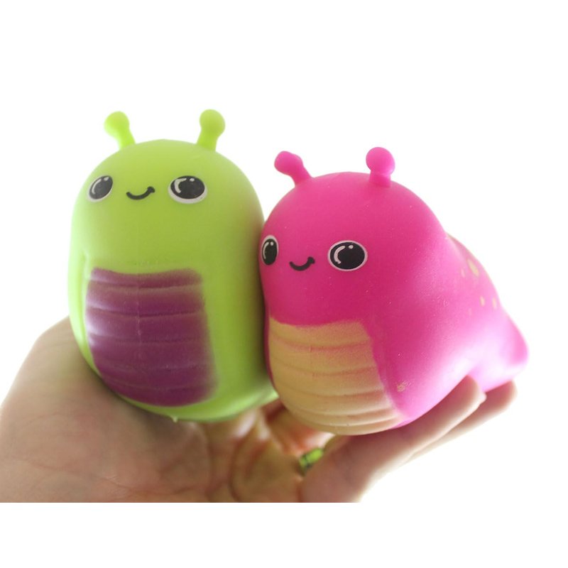 INCLUDES 2 RANDOM COLORS - These are chunky slug shaped stress balls. These slithery creatures are not only calming, but it also helps build hand and finger muscles and bilateral coordination. The cute bugs filled with a unique soft foam / shaving cream fiber filling that feels like soft frosting. It has a super-soft skin. They are 4" x 2.75" x 2.25", and come in 4 different colors.