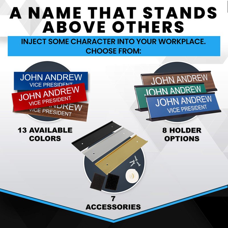 - PROFESSIONAL LOOK: Make your home or office desk stand out with these professional looking name plates.