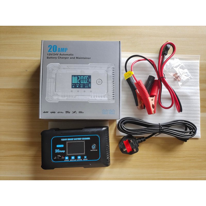 20 Amp Lithium Battery Charger, 12V and 24V Lifepo4,Lead-Acid(AGM/Gel/SLA..) Portable Car Battery Charger,Battery Maintainer, Trickle Charger, and Battery Desulfator for Car,Boat,Motorcycle…