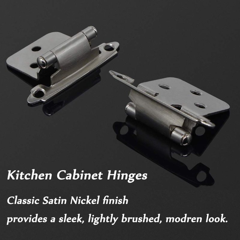 20 Pack(10 pairs) Home Building Store Decorative Self Closing Face Mount Flush Kitchen Cabinet Hinges Variable Overlay Satin Nickel