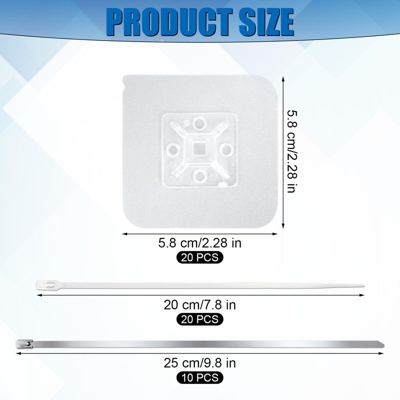 - Product Includes: You will get 20 pieces of adhesive furniture anchors, 10 pieces of stainless steel ties and 20 pieces of nylon ties; sufficient quantity for your daily use needs.