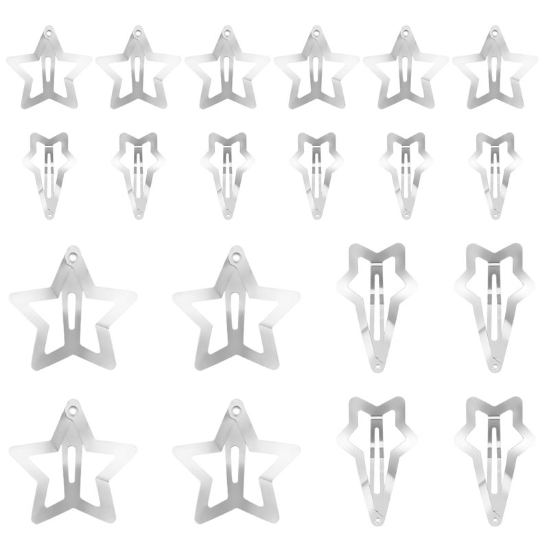 20pcs star hair clips, (3.2cm pentagram clip) * 6, (4cm pentagram clip) * 4, (5cm meteor clip) * 6, (7cm meteor clip) * 4<br>