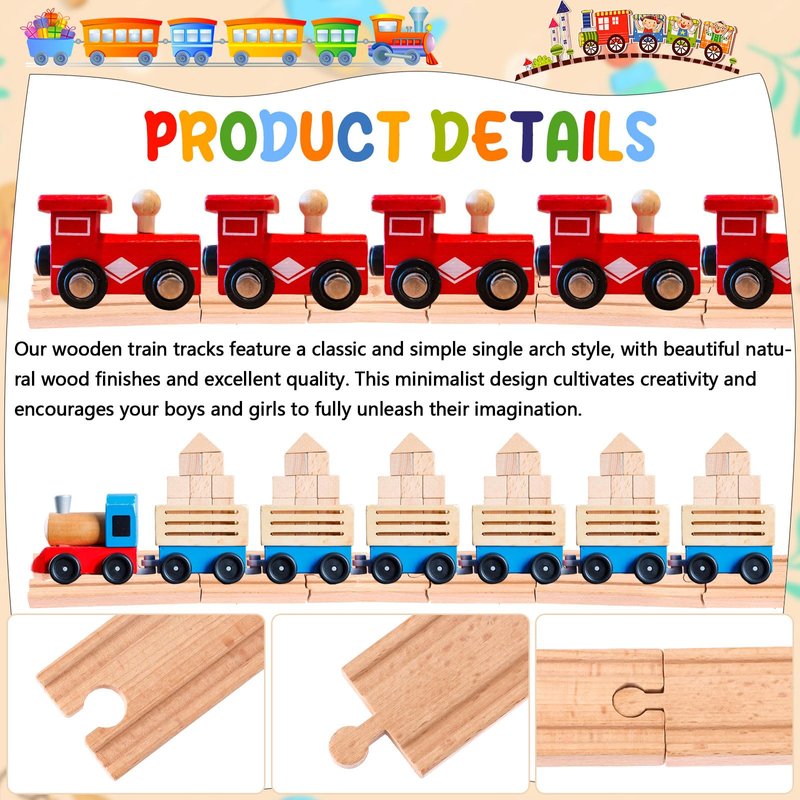 The wooden train tracks set can withstand the wear and tear of playtime, the smooth and polished surface of the tracks makes it easy for trains to glide over them, you can add additional track accessories, such as tunnels, bridges, and buildings, to enhance the realism and excitement of your train world