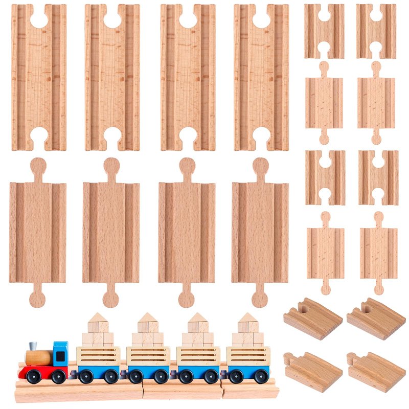- Value Package: 20 pieces of straight train tracks set, including 4 long male-male adapters, 4 long female-female adapters, 4 short female-female adapters and 4 short male-male adapters, 4 starting train tracks, the wood train track set can good expansion to your existing train setup