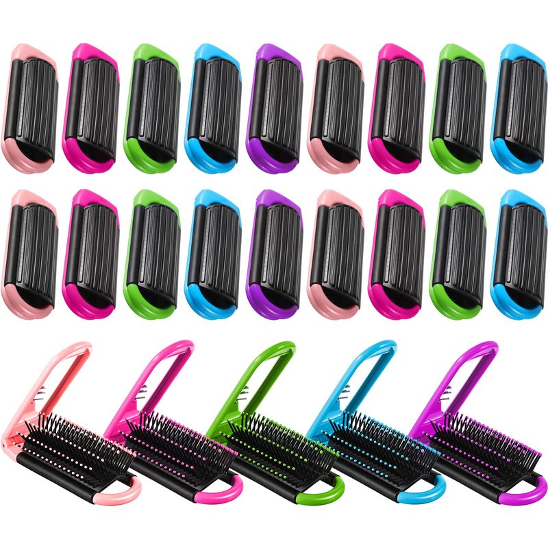 20 Pieces Travel Hair Brush Portable Folding Hair Brush with Mirror Mini Compact Hair Comb Collapsible Colorful Pocket Square Massage Brush for Family, School, Car, Bag
