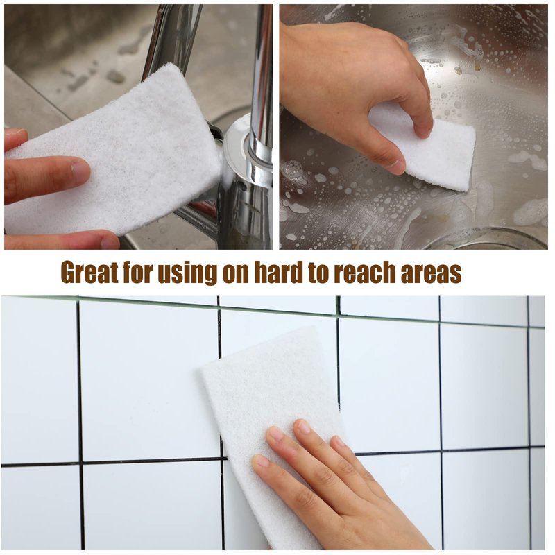 - Reliable Material: each non scratch scrub pad is made of polyester with a dense texture, non woven pattern, bonded with a firm adhesive, washable and reusable for longer life