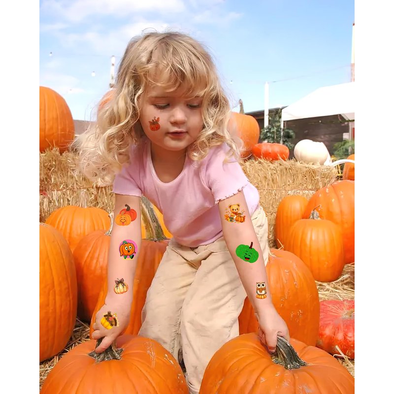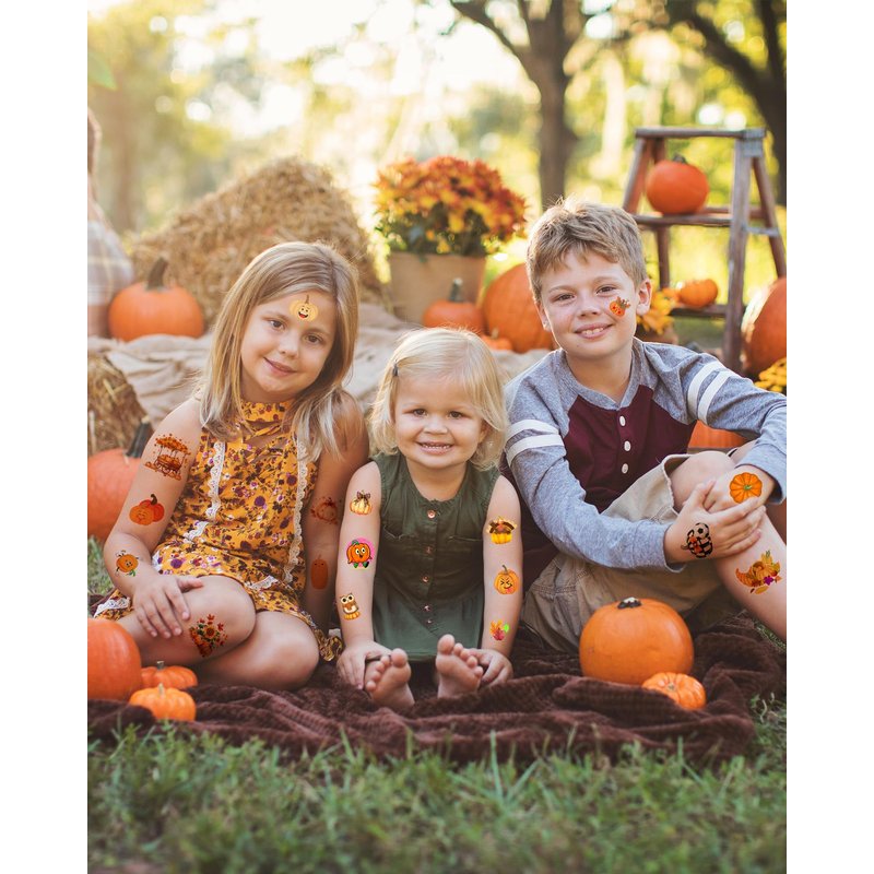 - Thanksgiving Pumpkin party decorations Package includes 216 pieces of Pumpkin themed temporary tattoos, which can be used wherever you want, such as arms, face, and hands
