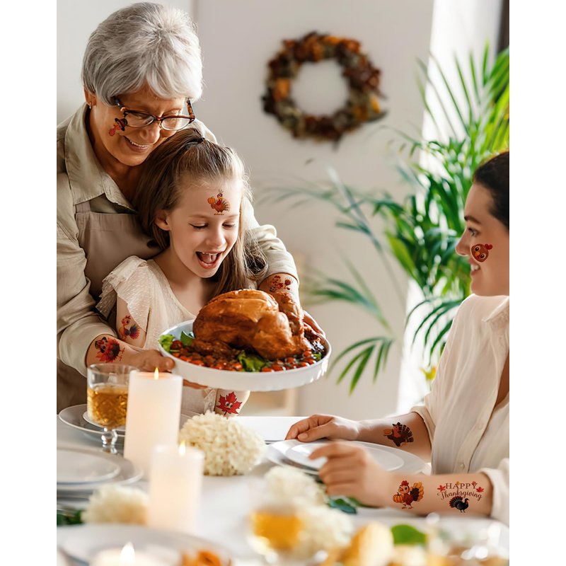 - Friendly to Skin Thanksgiving party decorations,our temporary tattoos have been put through rigorous party testing and are 100% guaranteed to last all day,Non-toxic, harmless and tasteless, the tattoos do not cause irritation