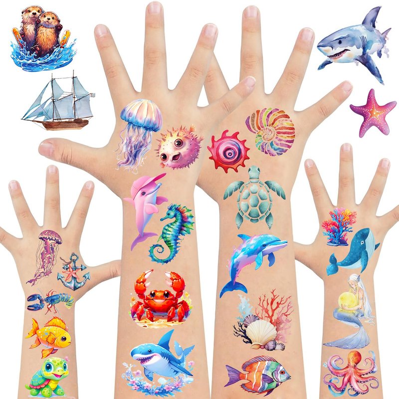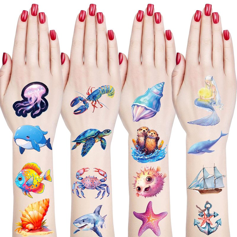 - Ocean Animals Temporary Tattoos: This sea life tattoo stickers has 4 styles, 5 sheets in each style, 20 sheets in total; Each tattoo sticker includes about 13 different patterns, about 270 patterns in total; The styles are very rich, and sufficient quantity is enough for your daily use and replacement