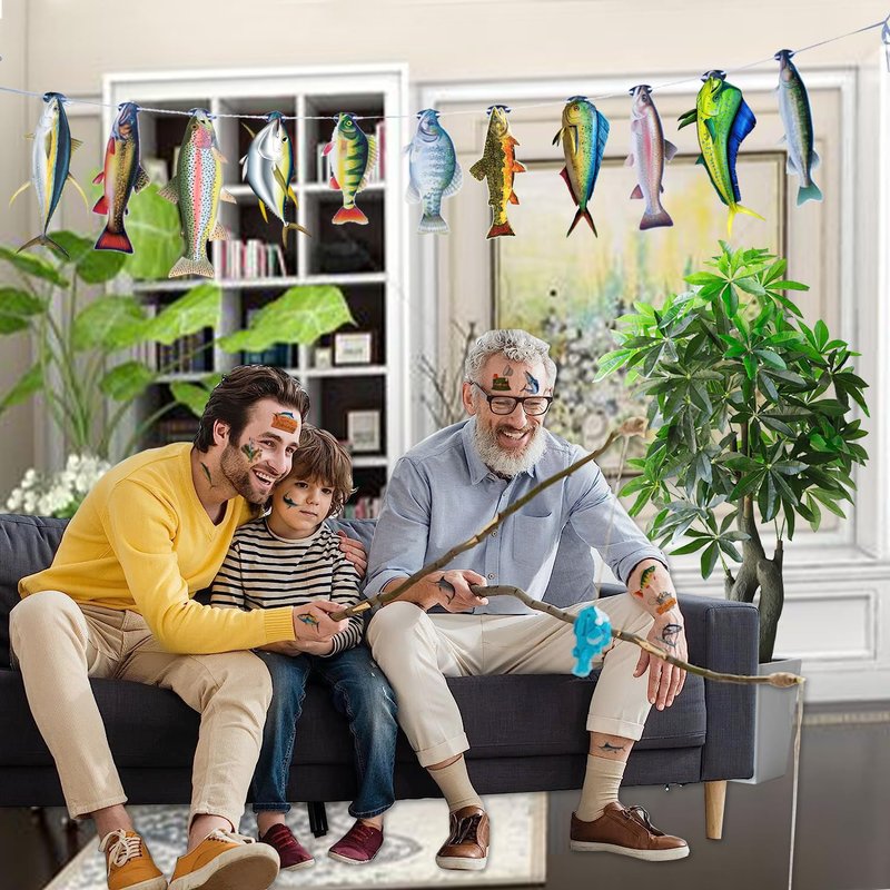 - 【Gone Fishing Party Supplies】:Gone Fishing tattoo stickers are both perfect for your and your children's birthday parties, go fishing parties, baby showers, retirement parties, graduations, Father's Day celebrations, fishing tournament celebrations or most other outdoor themed parties.