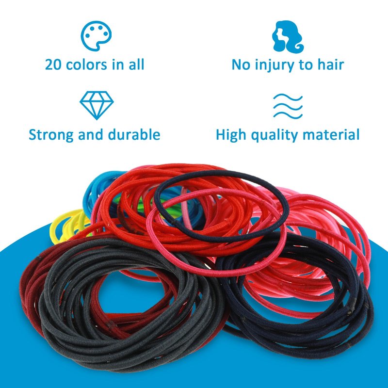 - Elastic Hair Ties: These no-metal hair elastics hair ties are made from high quality elastic material that is stronger and more durable. Easily stretch and secure your hair while you work, play or go out to maintain your style throughout the day; you can cut no damage ponytail holders off and create your own coverings for long-term use