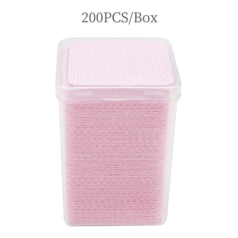 Mekupeu 200 pcs s Lint-Free Non-Woven Removal Tool for Eyelash Extension Glue & Nail Polish Removing and Wiping (Pink)