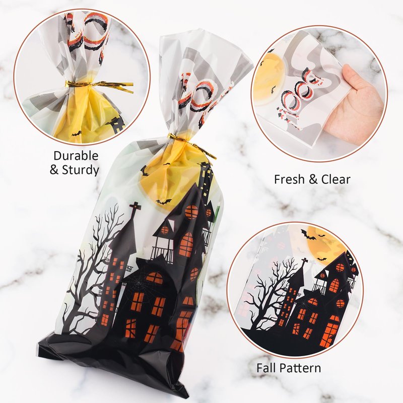 - Unique and Festive: These Halloween Cellophane Bags are a must-have addition to your Halloween party supplies. Decked out with different Halloween characters, fill these treat bags with candies, cookies or small toys! Give one to each partygoer at your Halloween party or hand them out to trick-or-treaters!