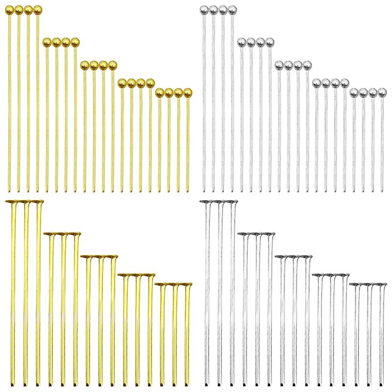 2000Pcs Assorted Head Pins Set for Jewelry Making,Jewelry Head Pins Kit Includes 1000Pcs Ball Head Pins 1000Pcs Flat Head Pins Eye Pins for Jewelry Finding,DIY Craft(Silver,Gold)