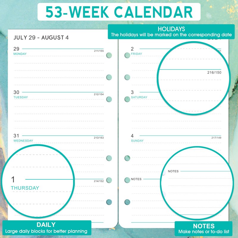 - 🌲 STYLE - Simple and elegant + Unlined and large spacing of the week + Use this planner inserts 2024-2025 to fill your planner in and then put it into a 6-hole organizer. Keep track of deadlines, special events and more with this 2024-2025 planner refills from now on!